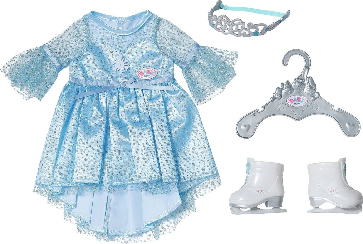 S tem sanjskim kompletom se najljubša lutka otrok spremeni v pravo ledeno princeso, ki je pripravljena na bleščeče nastope na lesketajoči se ledeni ploskvi. Vrhunec kompleta je bleščeča obleka, ki ob vsakem gibu magično zasije na svetlobi. Kraljevski videz dopolnjujeta tiara in barvno usklajene drsalke, ki vabijo k domišljijskim zimskim zgodbam in pestrim igram vlog. Ta vsestranski dodatek poskrbi za dodatno mero sijaja v vsakdanji igri in oživi zimske sanje.