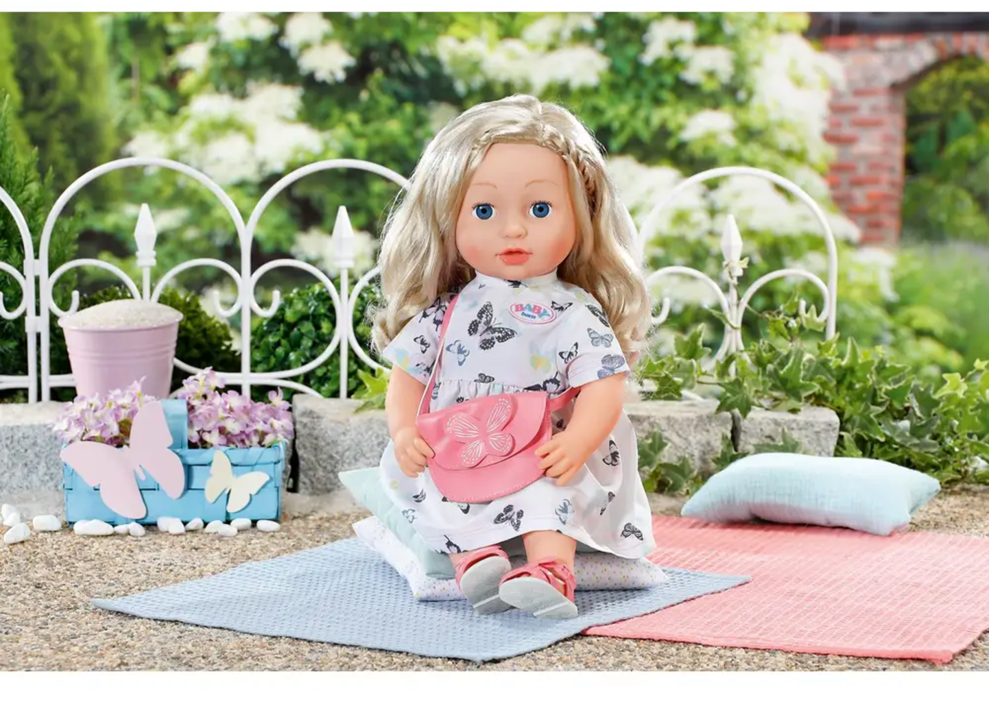 S tem ljubeče zasnovanim kompletom oblek je vaš BABY born pripravljen na poseben nastop. Lepa obleka z ujemajočo se torbico in čevlji zagotavlja še več zabave med igro in ustvarjalnega oblikovanja. Idealen za starše malih lutk, starih 3 leta in več - ljubek komplet, v katerega se boste zaljubili.